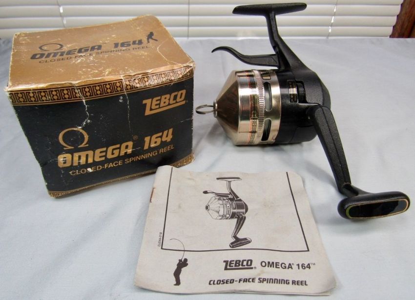 Sporting Goods Fishing Vintage Reels Spinning Reels Sporting Goods Fishing Reels Spinning Reels Zebco Omega 164 Under the Rod Close Faced Spinning Reel in original Box w/ Paper NM!